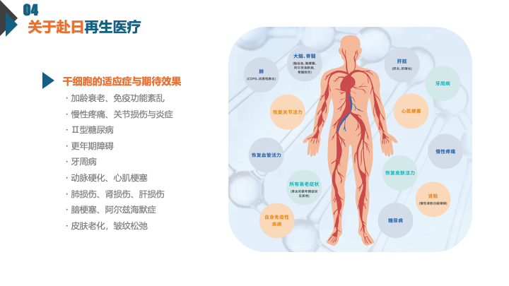 机制:干细胞具备自我复制与多向分化能力;注入后在体内巡航,富集于病灶,释放细胞因子以修复与再生组织。